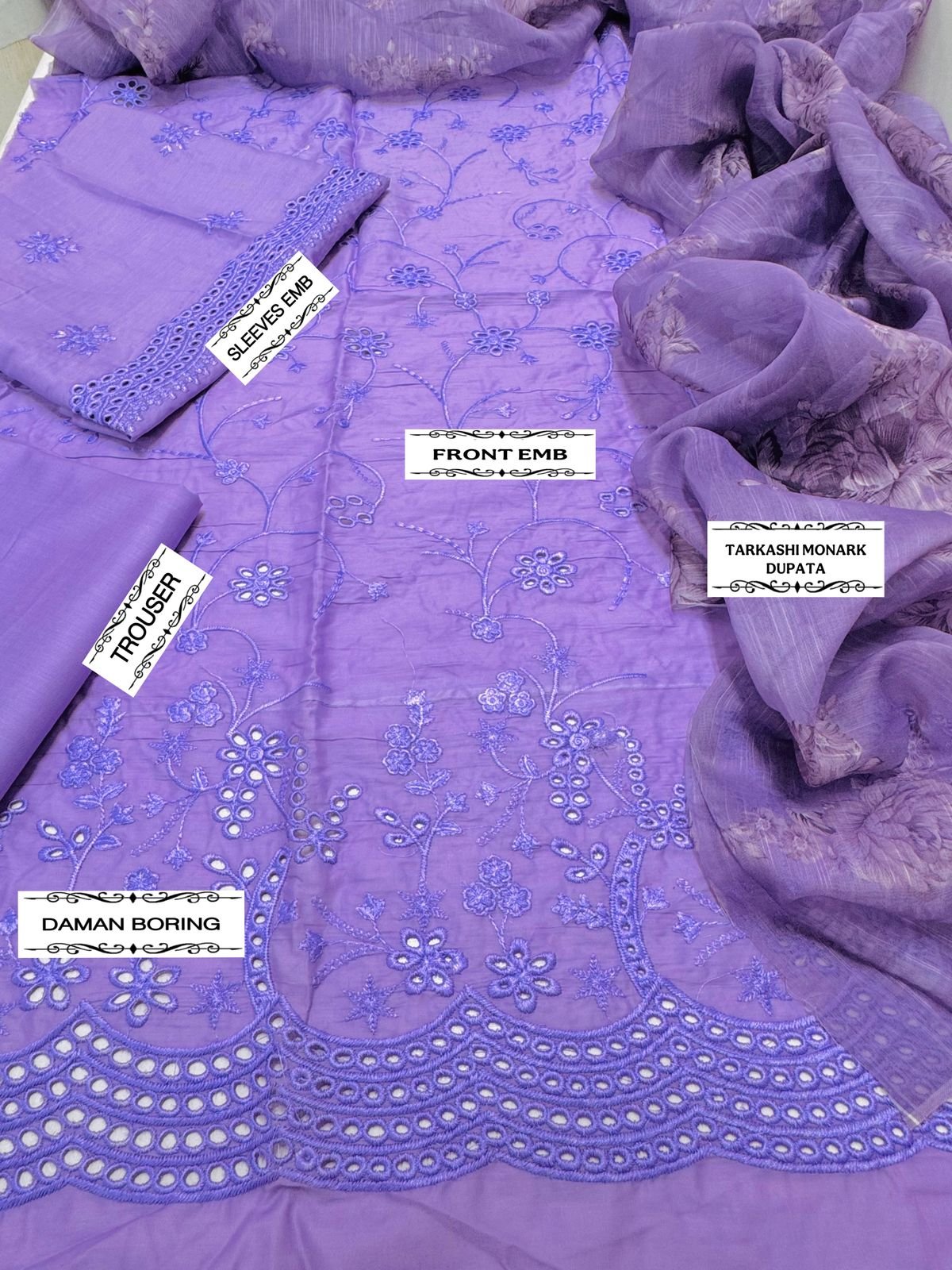 🌻LAWN AIR JET BEST WORLD CLASS QUALITY STUFF 🌻front Full Emb 🌻Tarkashi monark dupata 🌻 Seleeves Emb 🌻Damn Boring 🌻dyed trouser