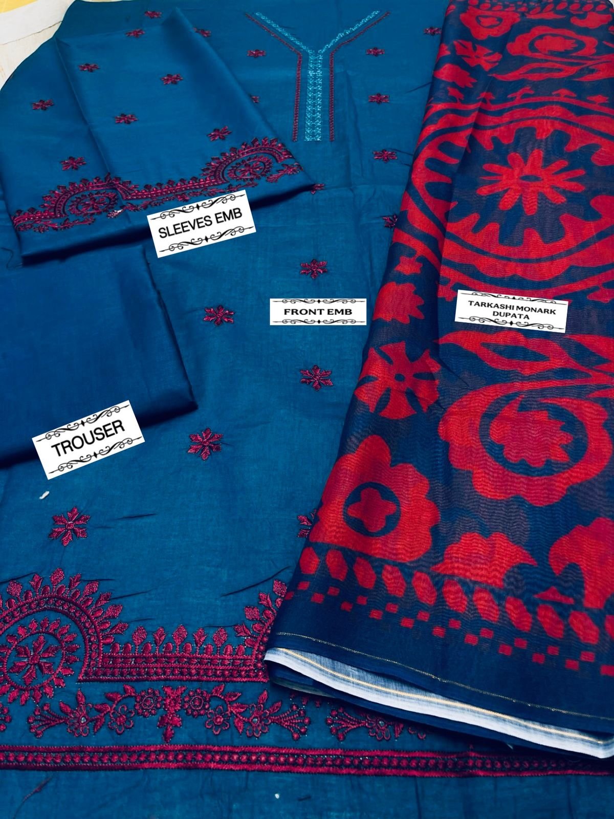 🌻LAWN AIR JET BEST WORLD CLASS QUALITY STUFF 🌻front Full Emb 🌻Tarkashi monark dupata 🌻 Seleeves Emb 🌻Head skip Boring Emb 🌻dyed trouser