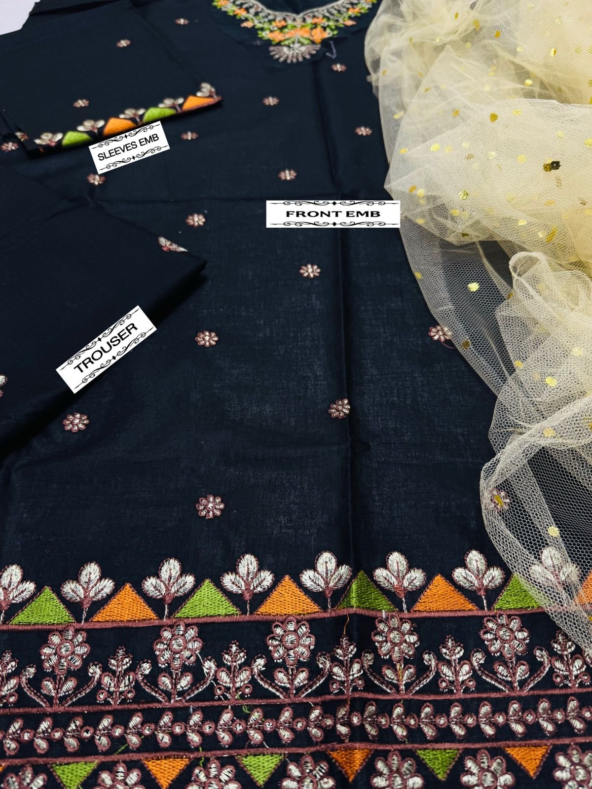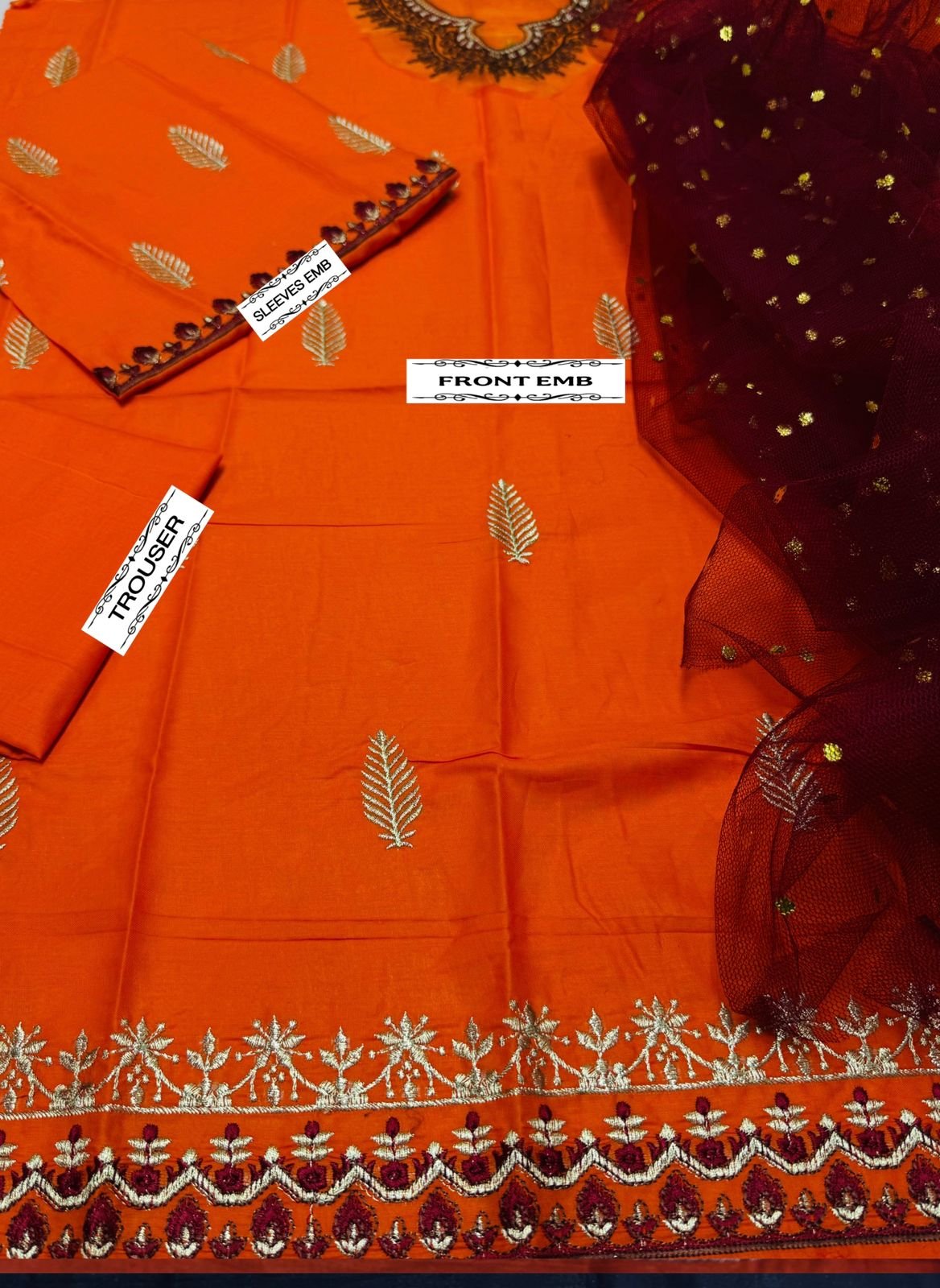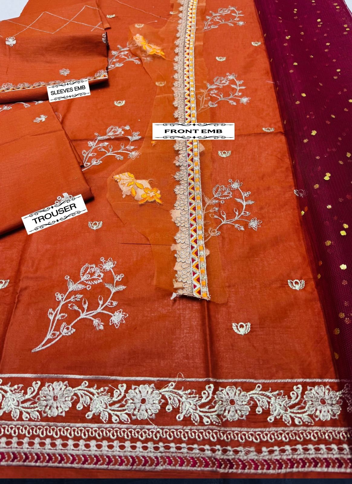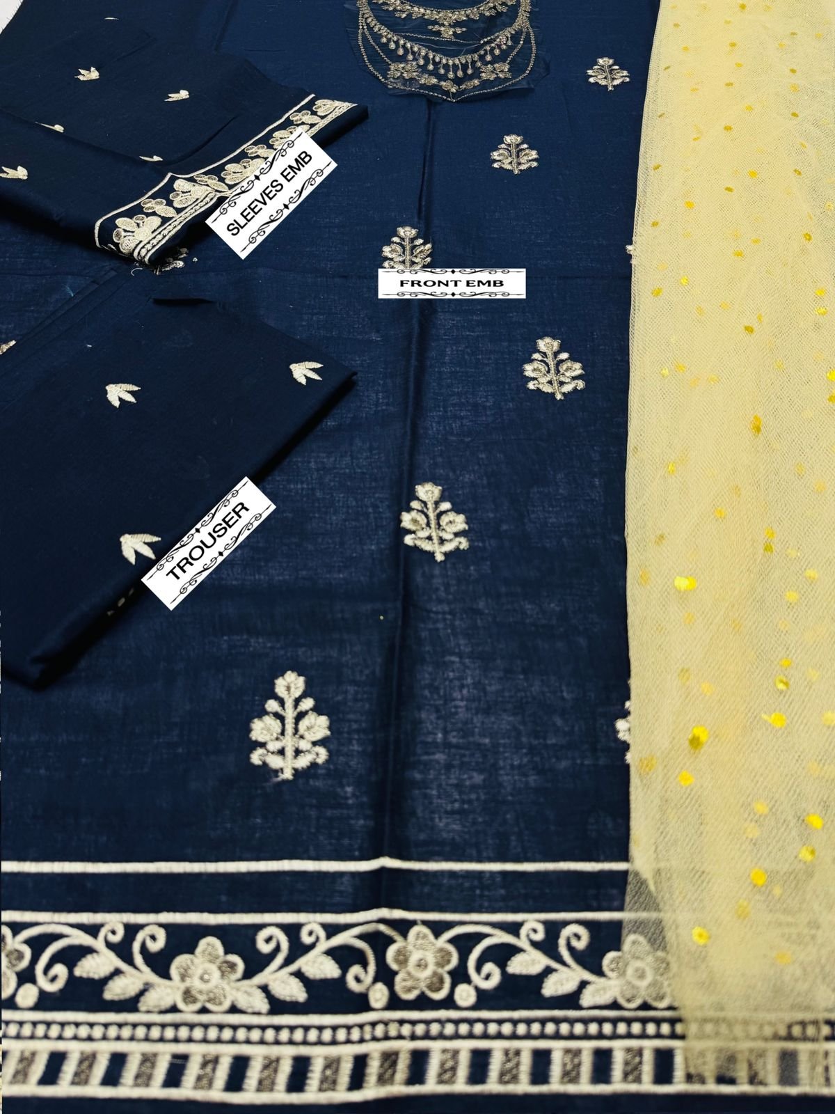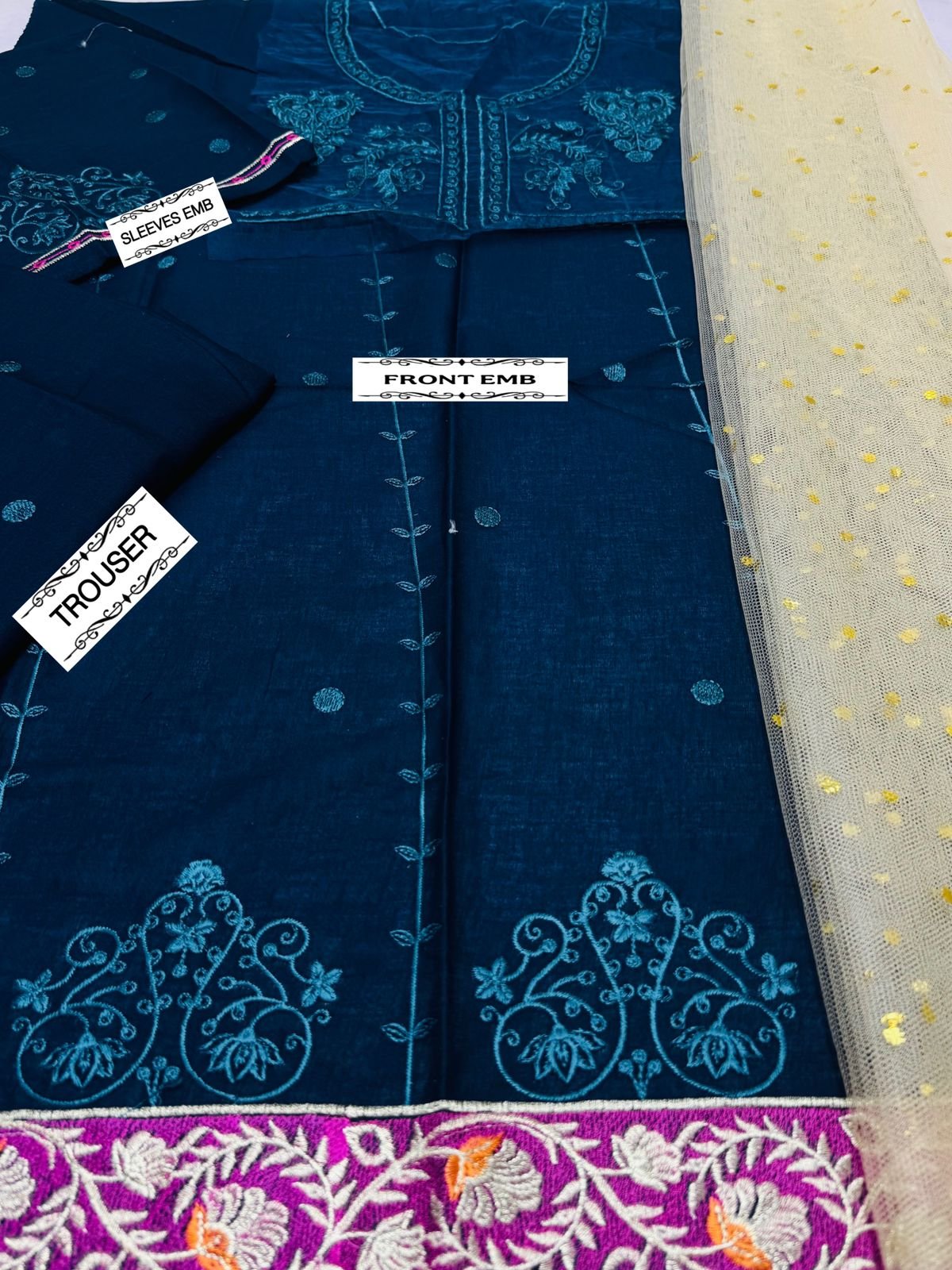 🌻LAWN AIR JET BEST WORLD CLASS QUALITY STUFF 🌻front Full Emb 🌻 Seleeves Emb 🌻Emb trouser 🌻Neck Emb Patch 🌻Damnpatch Emb 🌻 chunri dupata