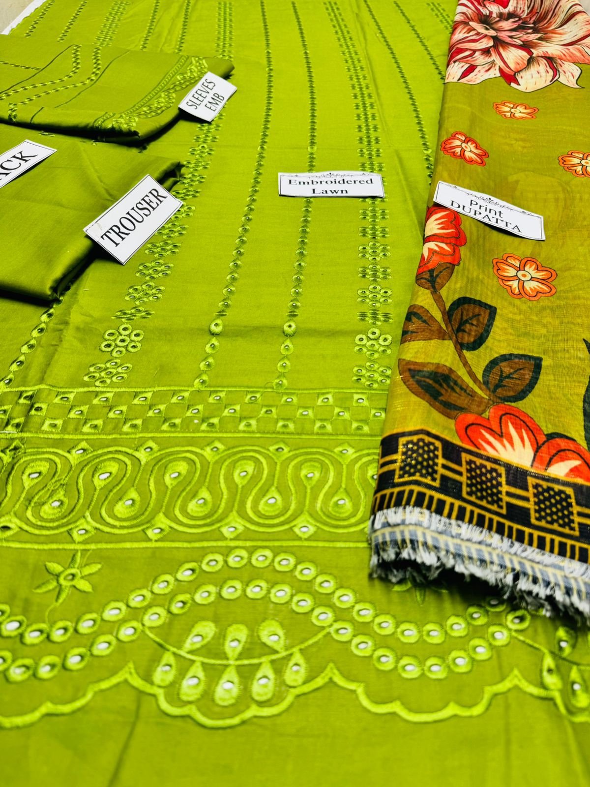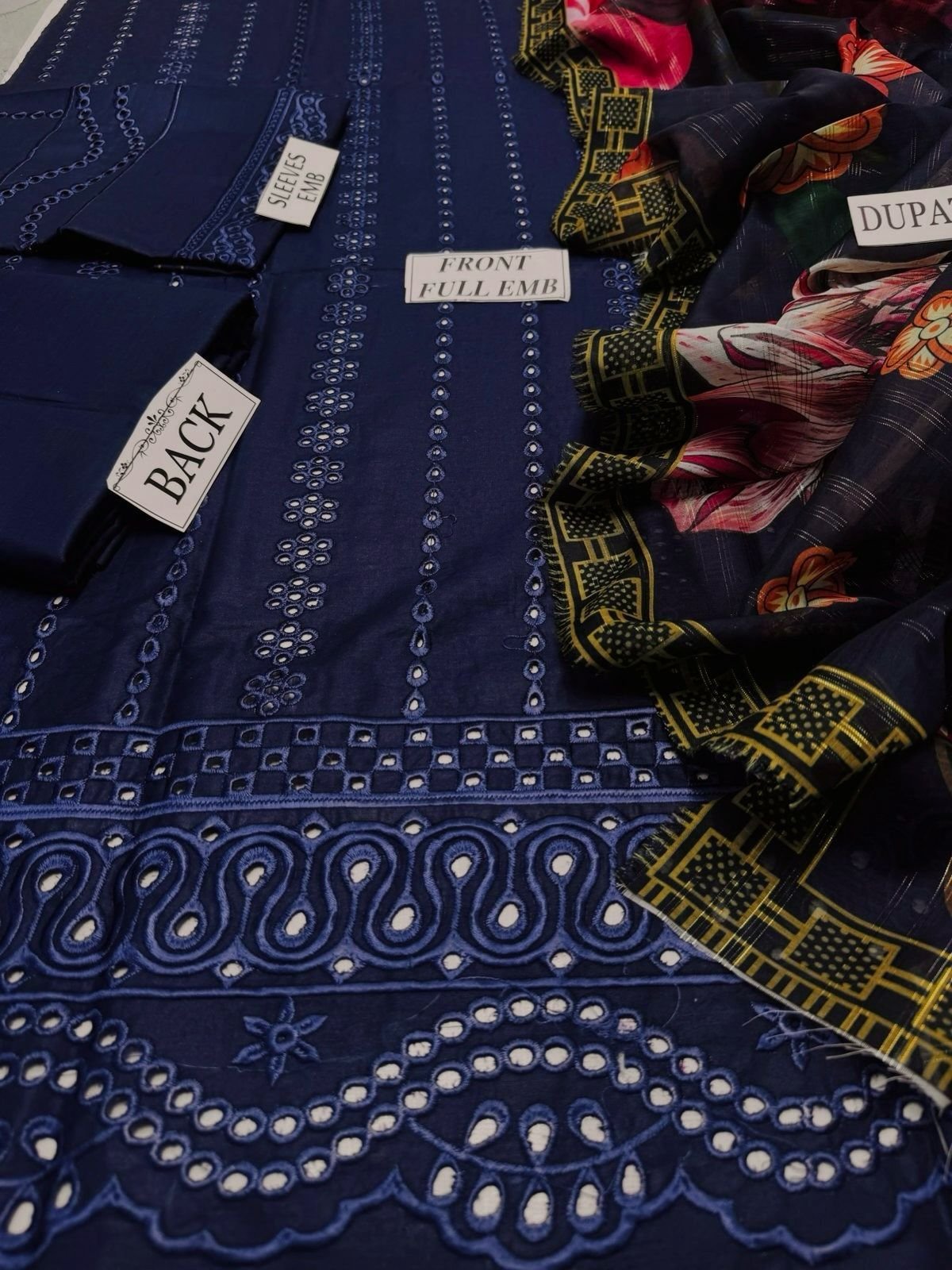 🌻LAWN AIR JET BEST WORLD CLASS QUALITY STUFF 🌻front Full boring Emb 🌻TARKASHI monark dupata 🌻 Seleeves Emb 🌻dyed trouser 🌻damn boring