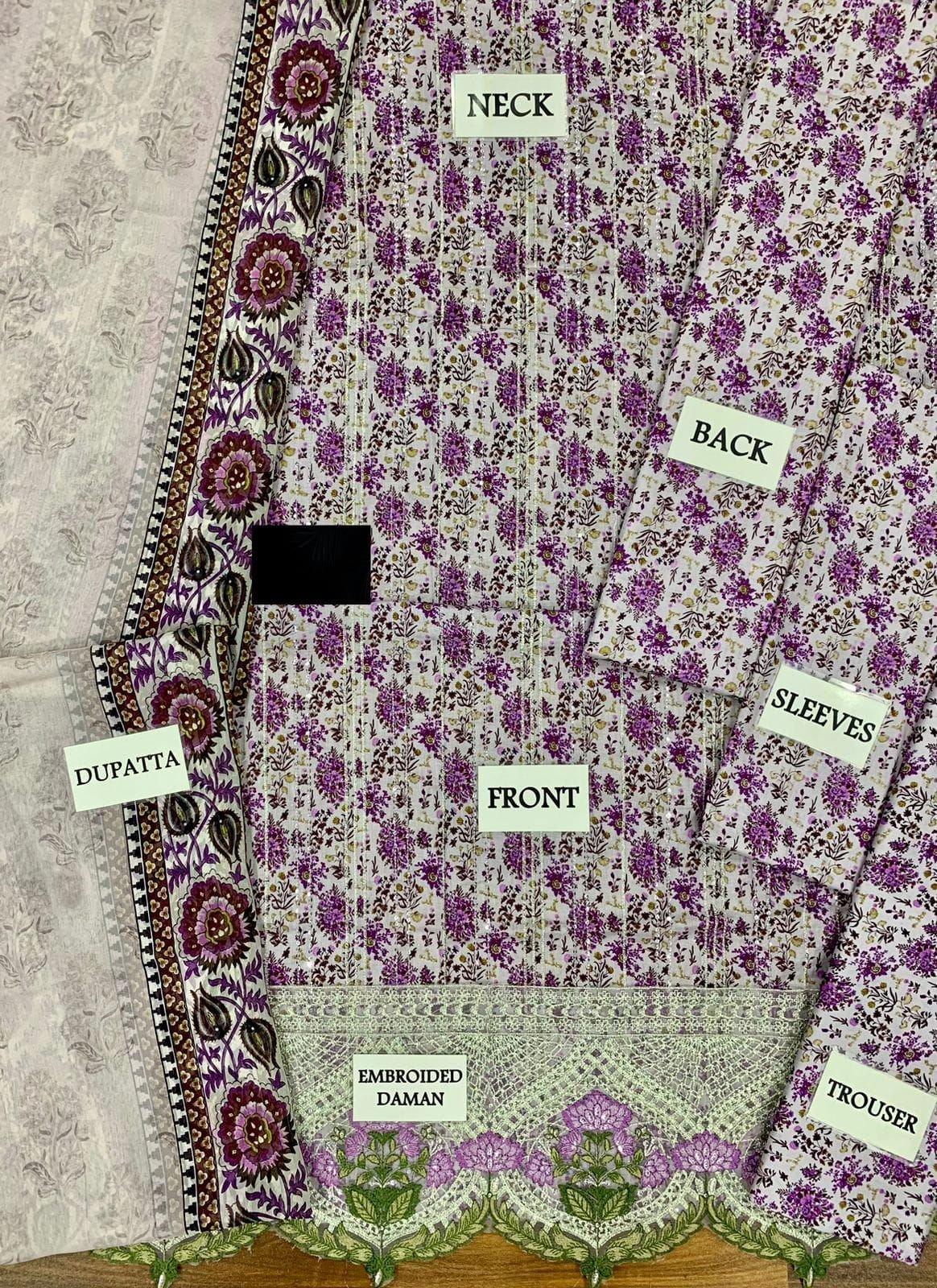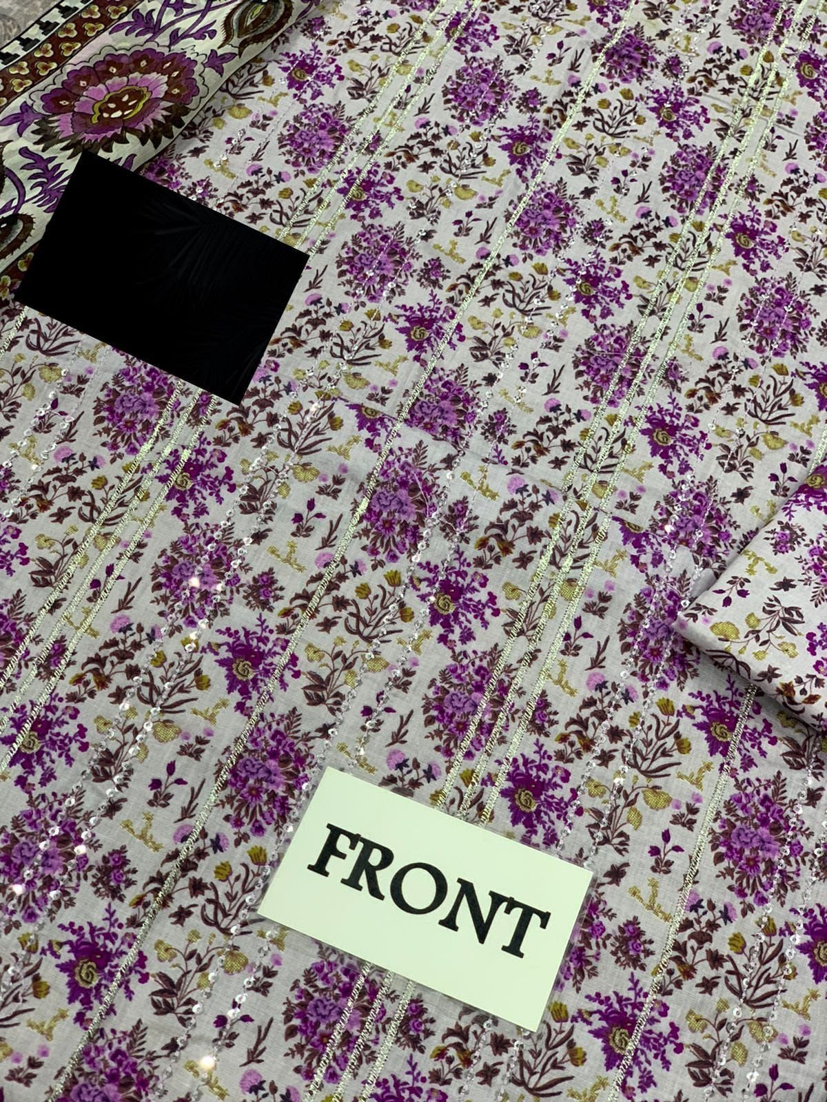 Printed lawn fully heavy embroidered spengle work front with fully heavy embroidered daman boarder
