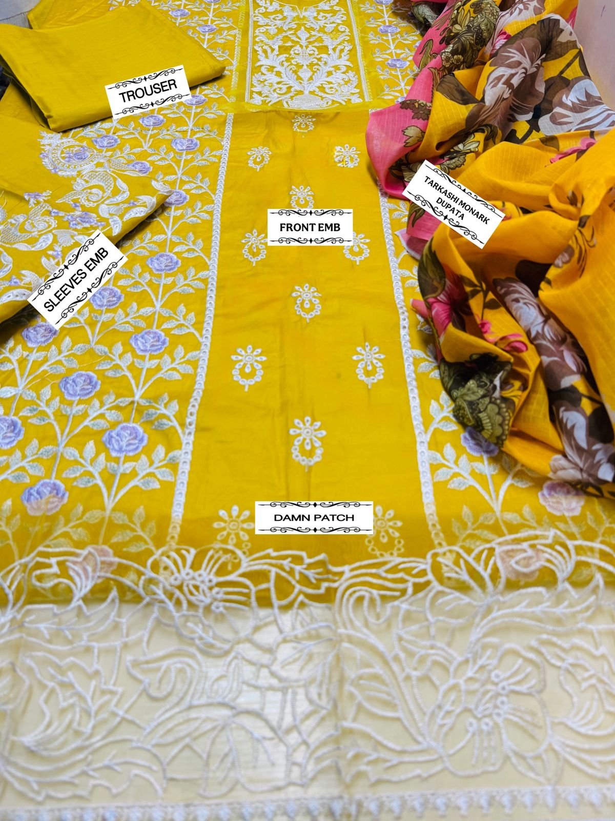 🌻LAWN AIR JET BEST WORLD CLASS QUALITY STUFF 🌻front Full boring Emb 🌻TARKASHI monark dupata 🌻 Seleeves Heavy Emb 🌻Dyed trouser 🌻damn Boring patch