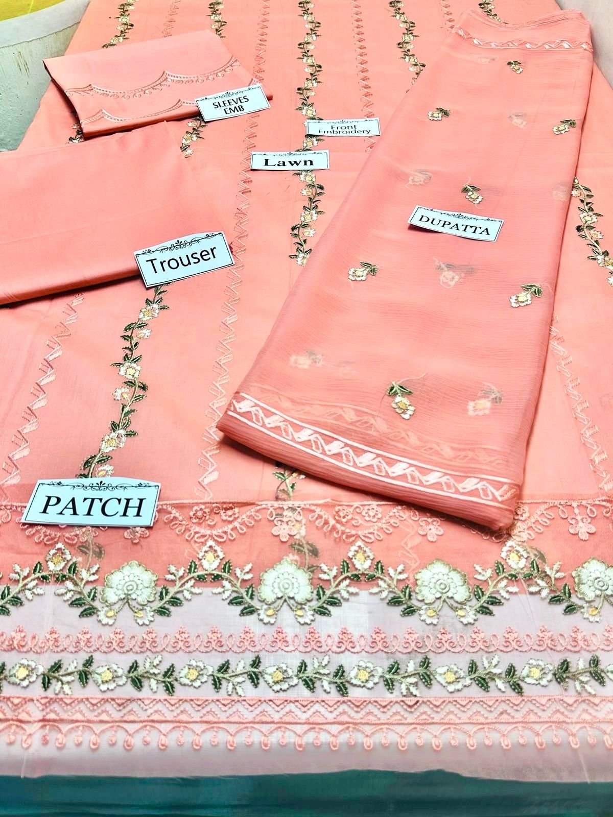 🌻LAWN AIR JET BEST WORLD CLASS QUALITY STUFF 🌻front Full Emb 🌻bamber Embdupata 🌻 Seleeves Emb 🌻Dmn Patch 🌻dyed trouser