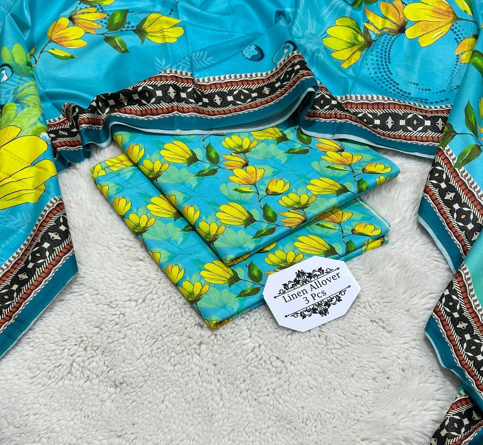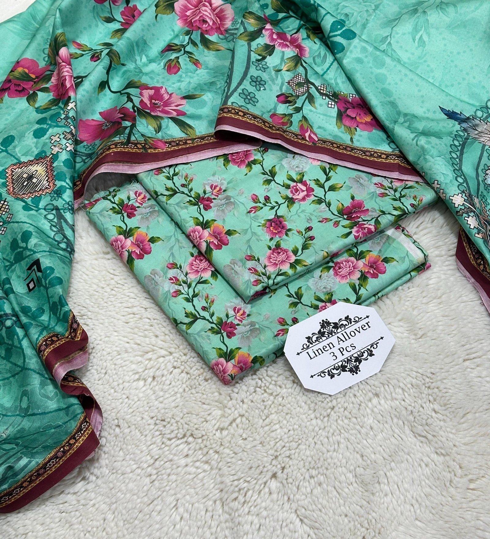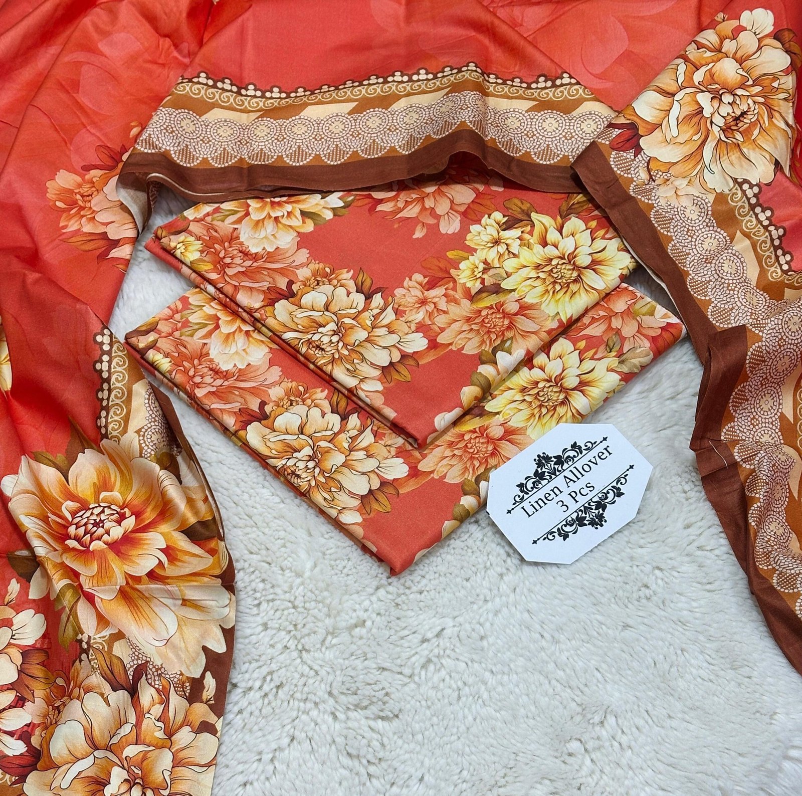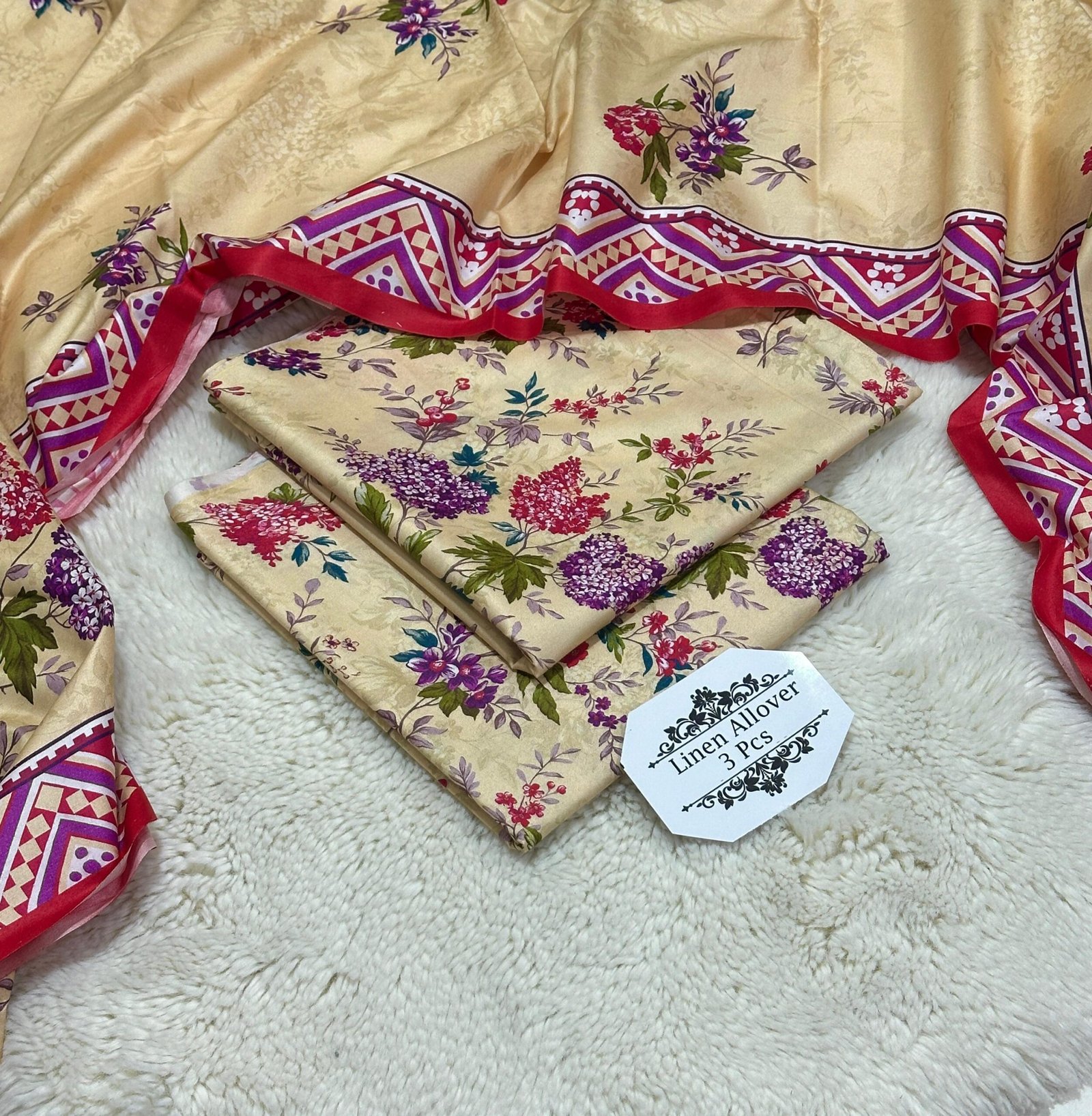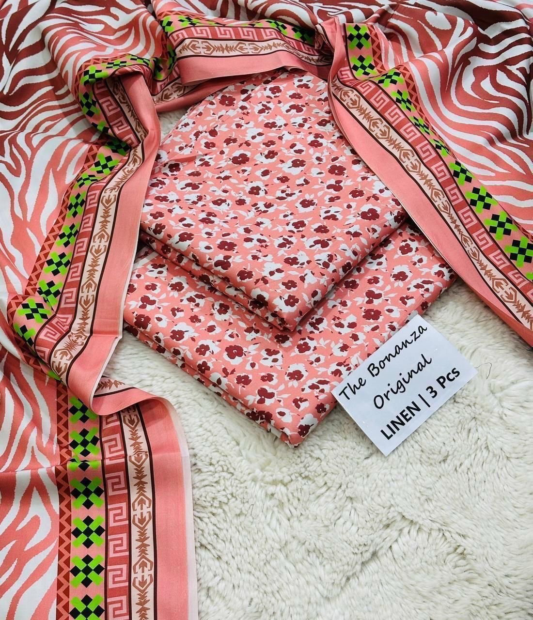 ️Printed Linen allover shirt ❗️Printed Linen dupatta ❗️Printed Linen trouser 10 piece in one set Single suit available